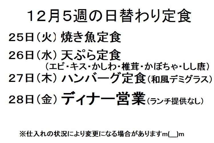 12月5週の日替わり定食
