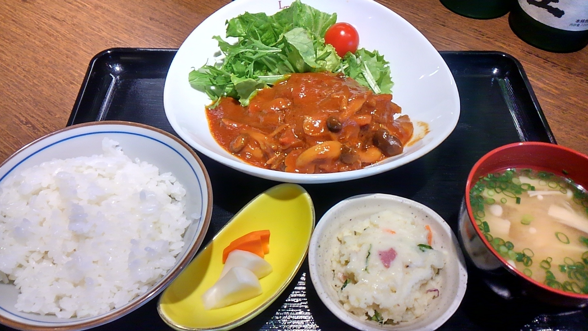 今日は、『ハンバーグ定食』(トマトソース)です! 注)画像はデミグラスです。