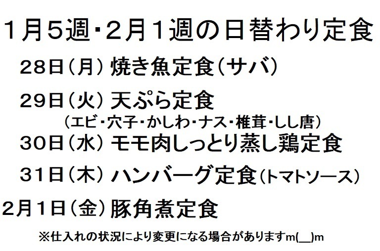 1月5週・2月1週の日替わり定食のお知らせ